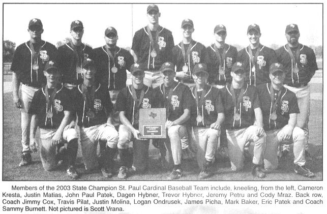 Shiner St. Paul Boys Baseball Team - 2003 TAPPS 2A State Champs Click on any photo to enlarge (all photos by Shiner Gazette)