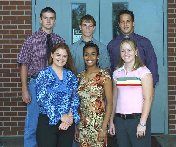 Shiner St. Paul High School will be hosting its 2003 Homecoming festivities this Friday night during halftime. The candidates for homecoming queen and their escorts (behind each candidate) are, from left: Kayla Harabis, escorted by Travis Pilat, Samantha Dubose, escorted by Cameron Kresta, and Kaedy Hermes, escorted by Eric Patek.